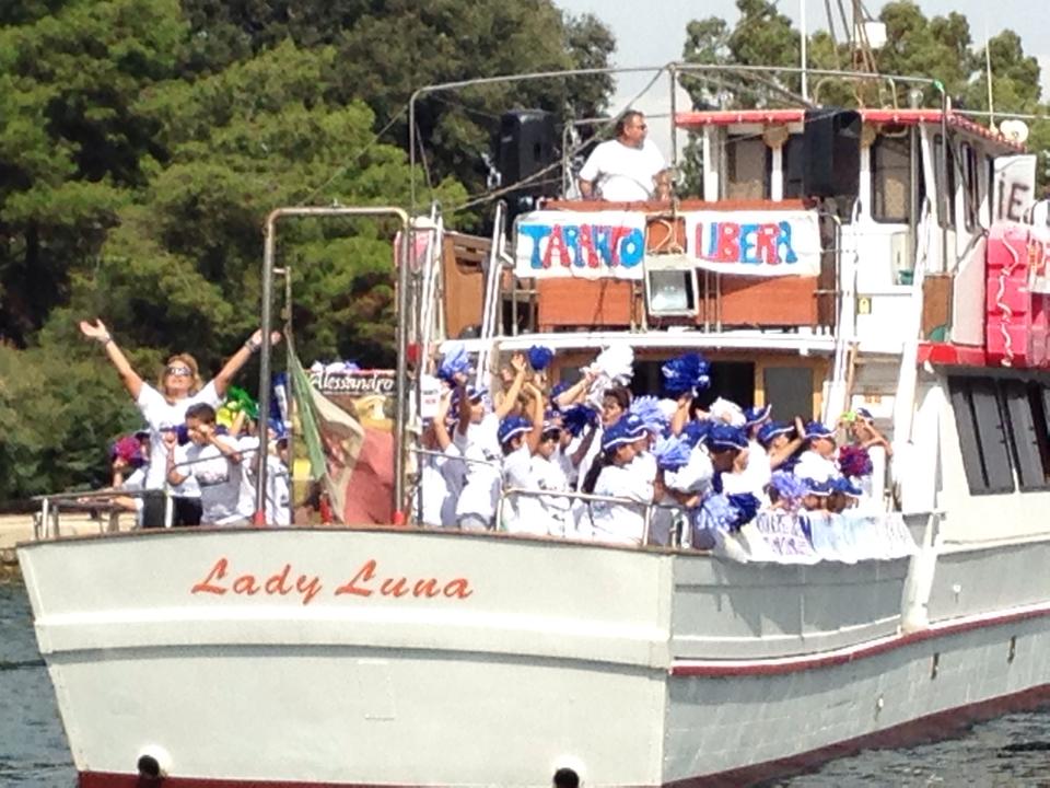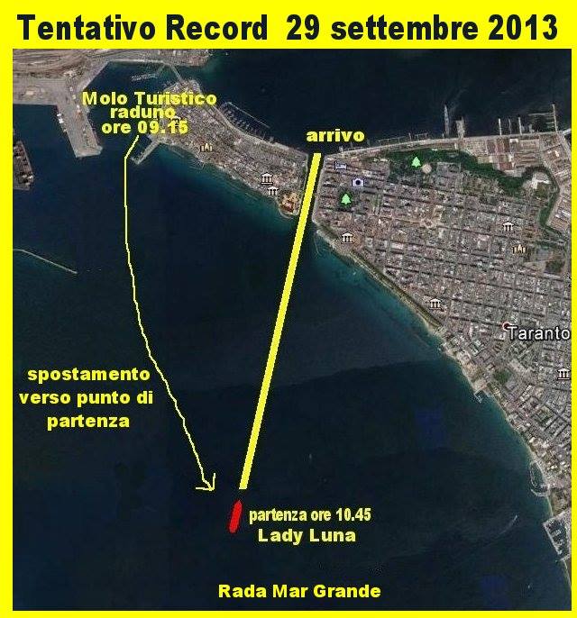 A nuoto senza pinne traineranno, per alcuni chilometri e fino al Canale Navigabile, 1 grossa imbarcazione con 100 bambini e 10 adulti per un carico complessivo di c.a 26 tonnellate. Seguiranno l’evento tv locali e nazionali. La finalità di questa iniziativa è quella di porre l’attenzione nazionale sulle problematiche ambientali della città di Taranto, ma anche quella di valorizzare le risorse del territorio e, soprattutto, quelle del mare. Durante la traversata, i bambini ed i loro assistenti lanceranno slogan, sventoleranno bandiere e striscioni ed eseguiranno canti inneggianti al cielo ed al mare pulito. La traversata sarà perfettamente visibile dal Lungomare (soprattutto nei pressi del Canale Navigabile, lato città vecchia).