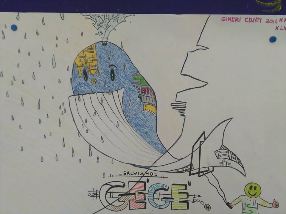 Gegè nasce il 13 luglio del 2013 a Paestum, durante un “sogno di una notte di mezza estate”.Mi presento: il mio nome è Gegè, ho cinque anni, sono un maschio di balenottera azzurra, appartengo alla famiglia dei Balenotteridi e al nobile ordine dei Cetacei. Ho una lunghezza di circa 29 m, le femmine sono più grandi. Embè ?Peso180tonnellate, ho un corpo affusolato con la pinna dorsale di piccole dimensioni e di forma variabile e una larga coda utile per le immersioni. Le pinne pettorali sono sottili e appuntite. Il colore del mio corpo è blu, grigio, nerastro con delle chiazze più chiare e nelle giornate di sole, quando nuoto subito sotto la superficie del mare, sembrano azzurre. Ho uno sfiatatoio che mi permette di respirare, il mio soffio può arrivare a un’altezza di 9 metri, jeaaaaaaaaaa!