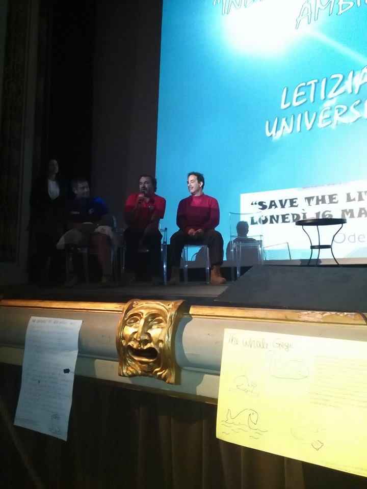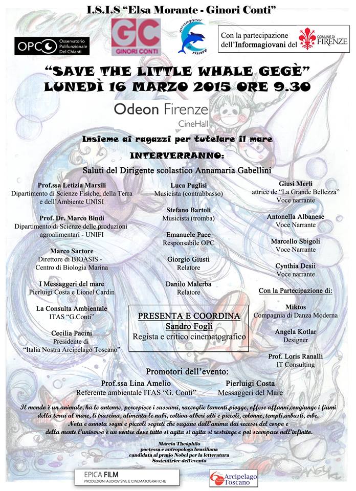 Firenze 16 marzo 2015, cinema Odeon, quasi 500 studenti, sono presenti nella sala, in tanti hanno con sé, piccole balenottere di stoffa, cucite da loro, che poi regaleranno ai tanti ospiti intervenuti alla manifestazione!