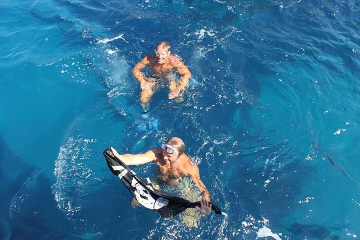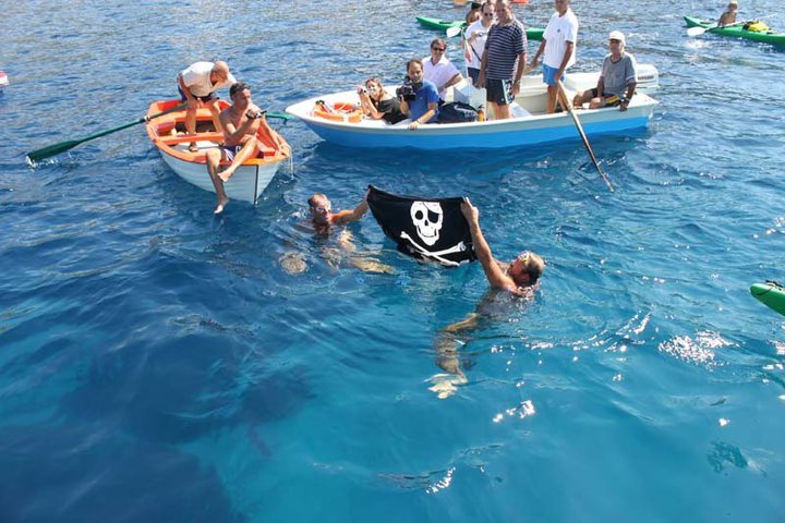 Pier Luigi Costa e Lionel Carden, il  nove agosto  del 2010,i due grandi Messaggeri del Mare consegnarono la Bandiera Nera ai petrolieri australiani che volevano trivellare il mare dell’Arcipelago Toscano.