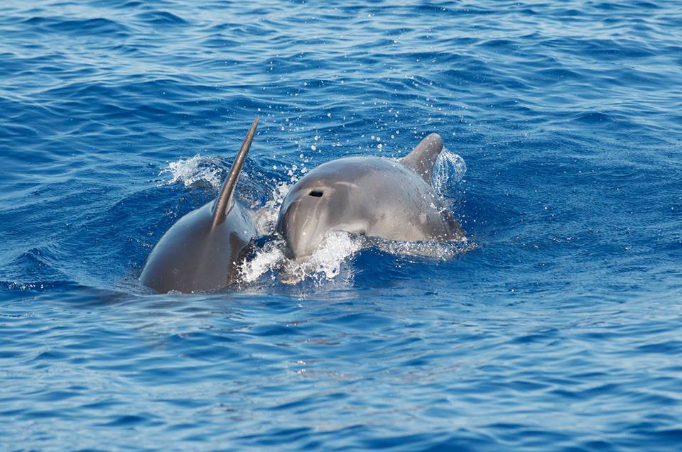 I due delfini: a sx la mamma e il piccolo a dx.